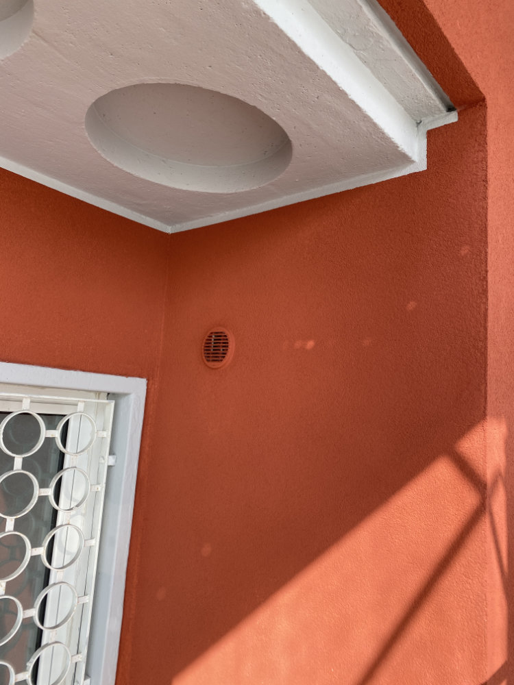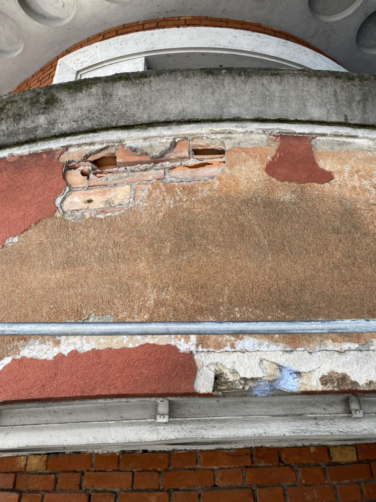 Dopo la rimozione delle parti deteriorate, è stato applicato un fondo consolidante e una rasatura armata per garantire maggiore resistenza, seguita da una finitura in rivestimento plastico.