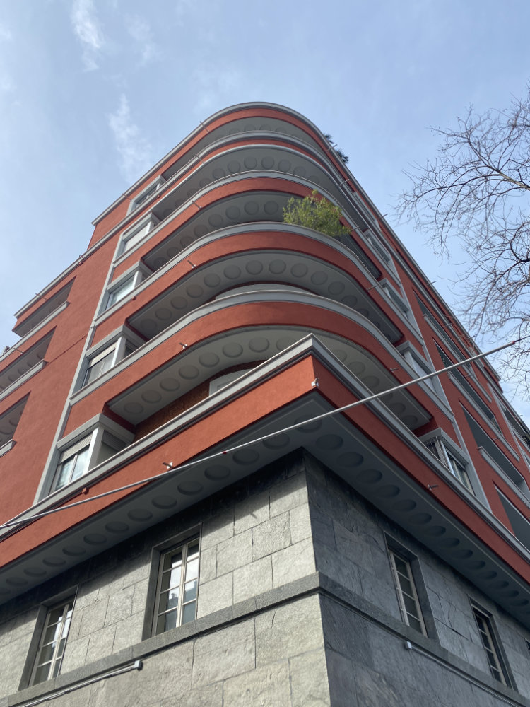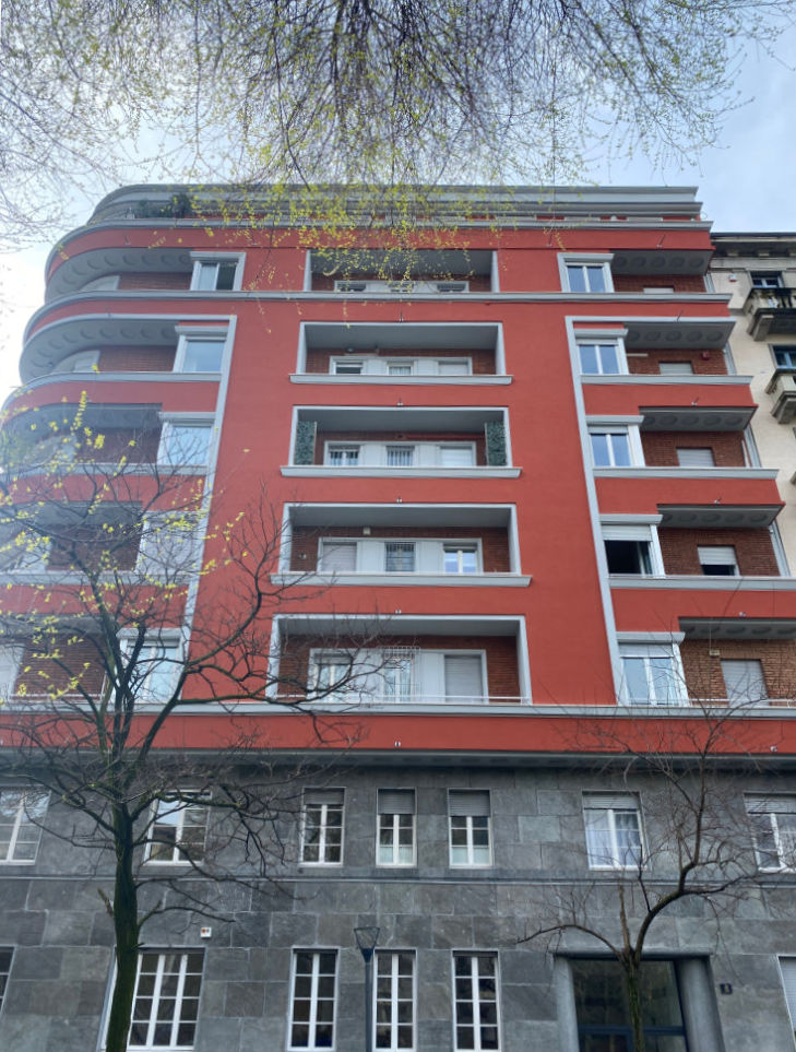 L'edificio presentava significativi segni di degrado sugli intonaci di facciata e sugli elementi decorativi in cemento, oltre a numerose infiltrazioni causate dal deterioramento delle guaine impermeabilizzanti di balconi e terrazzi. Gli interventi realizzati mirano a risanare tali criticità con soluzioni che garantiscano qualità estetica e durabilità nel tempo.